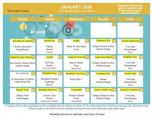 January TK-8 Breakfast & Lunch
