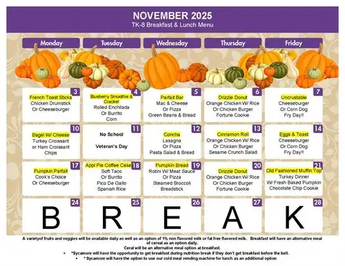 November TK-8 Menu