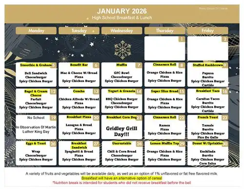 January High School Breakfast & Lunch Menu